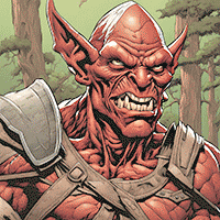 THE GETAWAY: As the last red-cloaked figure attempted to flee toward the stockade's front gate, a 20-foot-tall purple-skinned Fomorian giant armed with a great club squeezed into the inner courtyard and promptly smashed the cloaked figure dead. Rumbling in goblin, the angry giant gave orders to the remaining hobgoblin guards before casting Enlarge/Reduce on himself to walk inside the stockade building. The heroes hurried everyone up a ceiling hatch onto the roof of the complex. The hobgoblins were too busy assembling reinforcements to notice. As the elves and other prisoners fled over the eastern stockade and headed into the woods, Baroness Boada Ulaid blew a silver dog whistle and watched the skies.