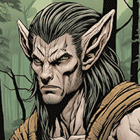 Having found a necklace bearing the symbol of House Ulaid next to a 5-day-old blood stain, the group begins tracking hobgoblin boot prints (also about a week old) heading west. Halfway through the third day the group is ambushed by Edhegron tree elves and a pair of their pet wood cats (tiger-sized creatures covered in orange scales). A battle ensures, with the unseen elves high in the trees issuing a series of boastful threats before suddenly retreating in silence from the high treetops. Animith Katan panics and flees, and the trio of heroes follow him back toward the east.
